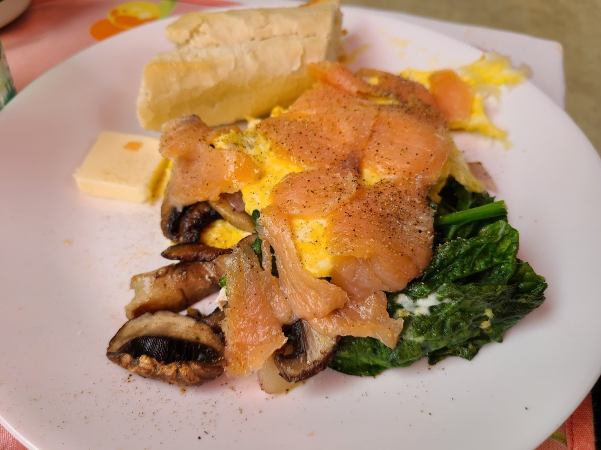 This is a nice small local breakfast place. Small indoor seating and they also have a patio seating. The ambience is basic with 7-8 tables Food was good and freshly prepared. The kitchen is just next to the seating area and the food was prepared in front of us. Also it was quick. The owners were friendly and hospitable. The service was very good.