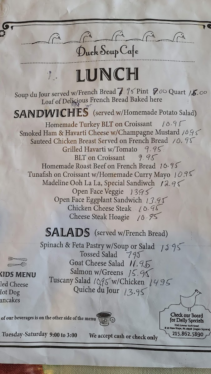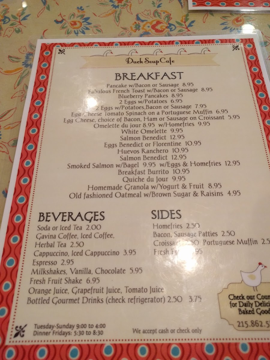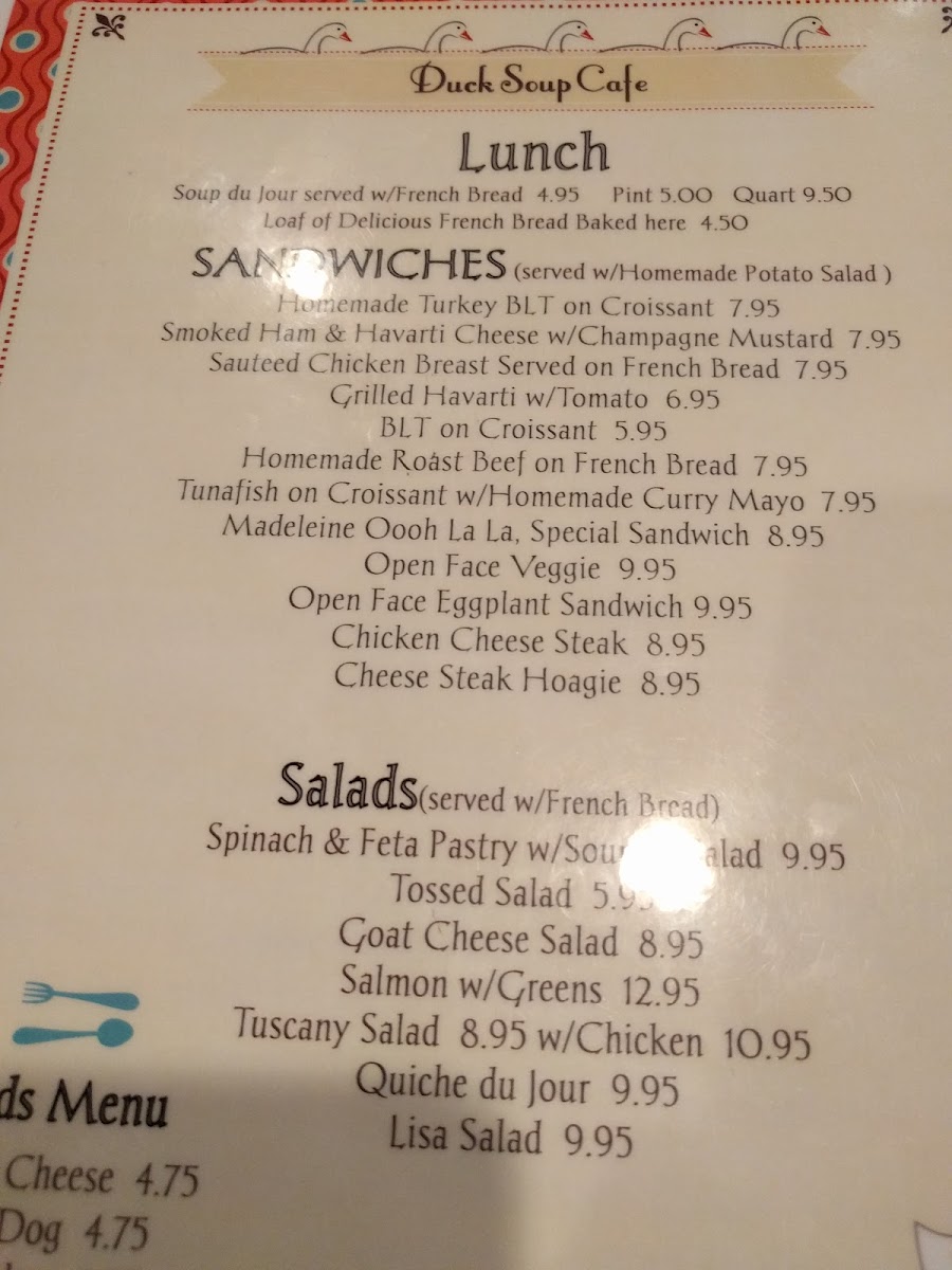 Duck Soup Cafe Menu
